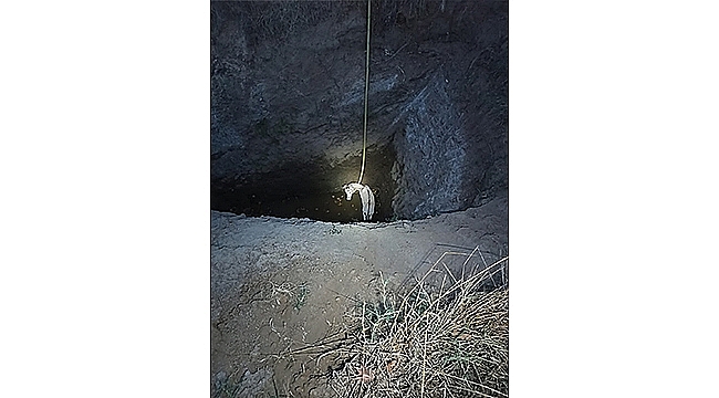 12 METRE DERİNLİĞE DÜŞEN EŞEĞİ, BELEDİYE EKİPLERİ KURTARDI