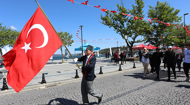 Vali İlhami AKTAŞ, AK Parti Çanakkale Milletvekili Jülide İSKENDEROĞLU, Boğaz ve Garnizon Komutanı Tuğamiral Mustafa Turhan ECEVİT, Çanakkale Belediye Başkan V. Birten SARIBAŞ, protokol üyeleri, şehit aileleri, gaziler ve vatandaşların katılımı ile gençler tarafından Cumhuriyet Meydanından Çanakkale Valiliği önüne kadar “Bayrak Yürüyüşü” gerçekleştirildi.