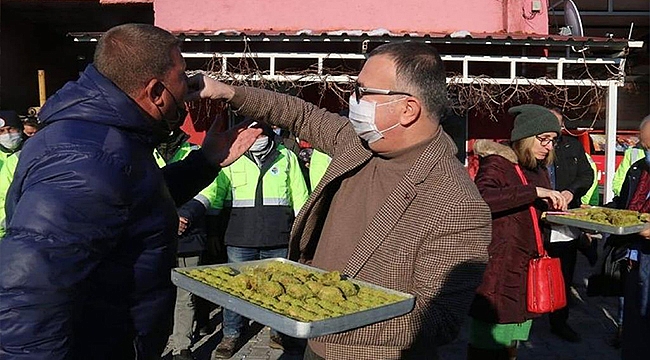 Kepez Belediye Başkanı Birol Arslan, kar yağışı sebebiyle hummalı bir çalışma yürüten belediye ekibine elleriyle baklava yedirdi.