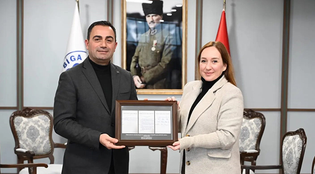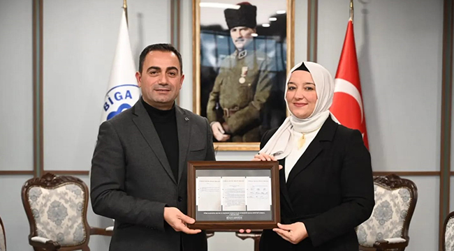 Biga Belediye Başkanı Bülent Erdoğan, kadınlara seçme ve seçilme hakkının verildiği gün olan 5 Aralık’ta, 88 yıl önce Meclis’te alınan ilgili kararlara ilişkin belgelerin yer aldığı tabloyu hediye etti.
