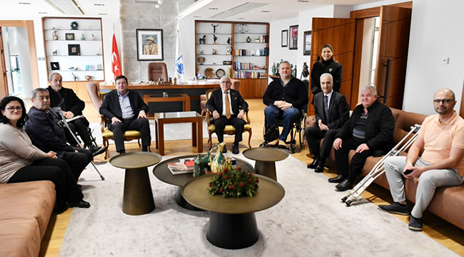 Türkiye Sakatlar Derneği Genel Başkanı Şükrü Boyraz, Dernek Genel Sekreteri Yılmaz Demirel, Çanakkale Şube Başkanı Ümit Burunlular ve yönetimini makamında ağırlayan Başkan Erkek, ziyaret nedeni ile duyduğu memnuniyeti dile getirdi.