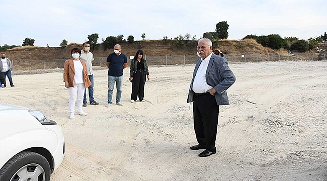 Belediye Başkan Yardımcıları ve teknik ekip eşliğinde alanı gezerek incelemelerde bulunan Başkan Gökhan, hafriyat atıkları döküm alanının kullanıma hazır hale getirilmesi amacı ile gerçekleştirilen çalışmalara ilişkin bilgi aldı.