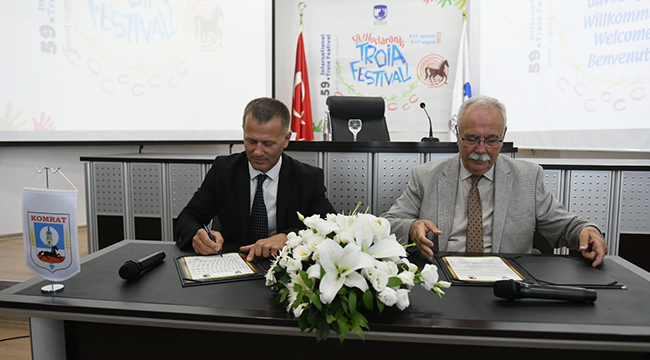 Ziyaret sonunda ise Moldava'nın Gagavuz Özerk Bölgesi'nde bulunan Komrat Kenti ile Kardeş Kent Protokolü için imzalar atıldı. Komrat Kenti ile Kardeş Kent olmaktan dolayı mutluluk duyduğunu dile getiren Başkan Gökhan; “Bakanlıklarımızdan onaylarımız aldık, meclis kararlarımız aldık, hayırlı uğurlu olsun. Hepinizin huzurunda kardeş kent ile imzaları atıyoruz” dedi.