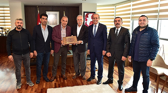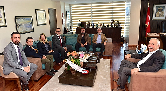 Çanakkale Malatyalılar Derneği Yönetimi ve Türk Ocakları Çanakkale Şubesi Yönetimi, Belediye Başkanı Ülgür Gökhan'ı makamında ziyaret etti .