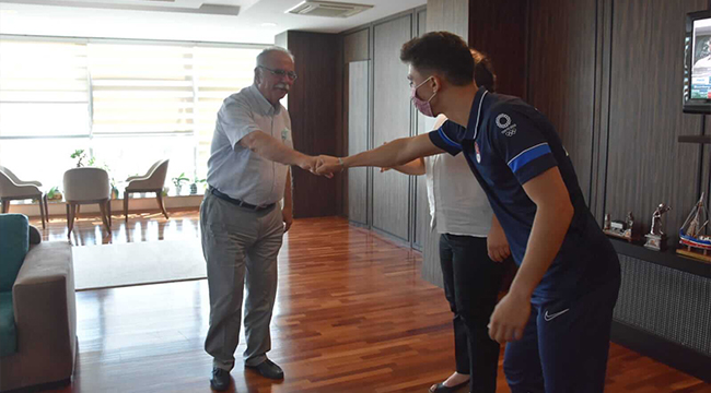 Özellikle gençlerin, sporun da aralarında bulunduğu çeşitli branşlardaki başarılarından büyük bir gurur ve mutluluk duyduğunu belirten Başkan Gökhan, “Gençlere güvenimiz ve desteğimiz tam” dedi. Başkan Gökhan, Oğuz Uyar’a hediye takdiminde de bulunarak hem kendisini hem de antrenörü Vijdan Berberoğlu’nu başarılarından dolayı tebrik etti. Ziyaret, olimpiyat süreci ve güncel konulara ilişkin sohbet ile son buldu.
