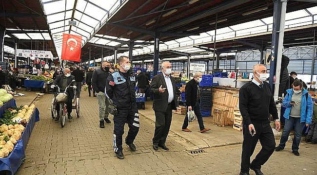 Denetim sırasında Pazar esnafı ile sohbet eden Başkan Gökhan, kentteki vaka sayılarındaki artışa dikkat çekerek, esnaftan maske, mesafe ve hijyen kurallarının yanı sıra İl Umumi Hıfzıssıhha Kurulunun aldığı tedbirlere mutlaka uymalarını istedi.