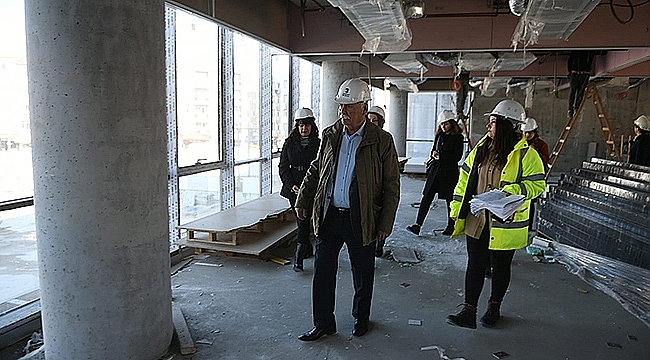 Başkan Gökhan teknik inceleme gezisi kapsamında ilk olarak Yeşil Yerel Yönetim ve Kültür Merkezi binasını ziyaret ederek çalışmaları yerinde inceledi. Belediye Başkan Yardımcıları ve teknik ekibin yanı sıra ÇOMÜ GSF Dekanı Prof. Dr. Evren Karayel Gökkaya, Dekan Yardımcısı Doç. Yeşim Zümrüt ve Dekan Yardımcısı Dr. Öğr. Üyesi Berna İleri'nin de eşlik ettiği ziyarette binayı gezerek incelemelerde bulunan Başkan Gökhan, binanın inşasında gelinen son durum hakkında yüklenici firma yetkililerinden bilgi aldı.