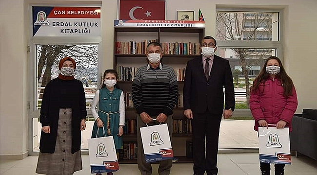 Kütüphane Haftası dolayısıyla ilçe kütüphanesini ziyaret eden Çan Belediye Başkanı Bülent Öz, kütüphanede en çok kitap okuyan vatandaşlara hediye takdiminde bulundu.