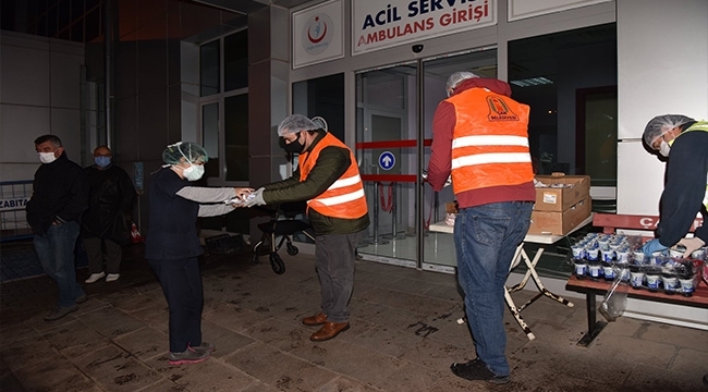 Çan Pandemi Hastanesinde mesai yapan aralıksız gece gündüz çalışan sağlık personeline Çan Belediyesi ekipleri yemek ikramı yaptı.
