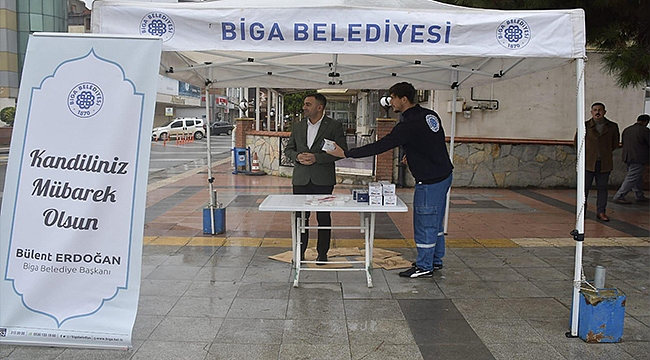 Biga Belediyesi, Mevlid Kandili dolayısıyla şehrin çeşitli noktalarında vatandaşlara ve esnafa kandil simidi dağıttı.