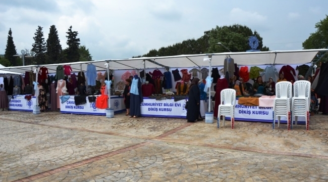 Biga Belediyesi bünyesindeki 4 bilgi evi kursiyerleri ile Atatürk Kültür Merkezi atölye çalışmalarına devam eden kursiyerlerin el emeği ürünleri için Belediye Meydanı'nda sergi açıldı.