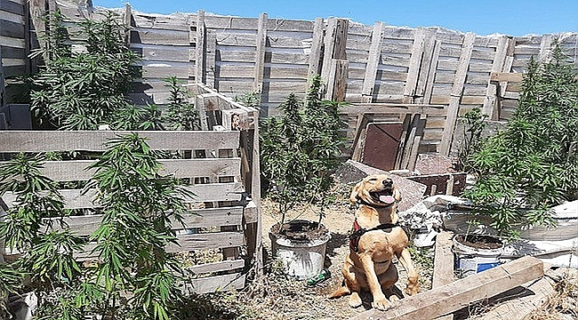 M.U.'ya ait ev ve bahçesine Uyuşturucu Madde Arama Köpeği Roket ile birlikte operasyon düzenleyen jandarma ekipleri burada yaptıkları aramada; saksılarda yetiştirilmiş 40 kök kenevir bitkisi ile 1 kilo 250 gram kubar esrar maddesi ele geçirdi.