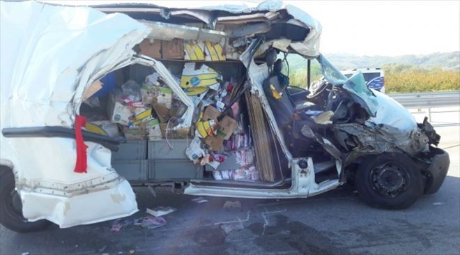 Alınan Bilgiye Göre Biga´da Pazarcılık yapan Bir firmaya ait 17 kf 780 plakalı Transit marka araç Lapseki Ada Tepe köyü çıkışında Aşırı Hız sebebi ile direksiyon hakimiyetini kaybederek önünde seyreden beton büz yüklü tıra arkadan vurdu.
