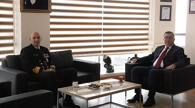 Boğaz ve Garnizon Komutanı Tuğamiral Mustafa Turhan Ecevit, Kepez Belediye Başkanı Birol Arslan'ı ziyaret etti.