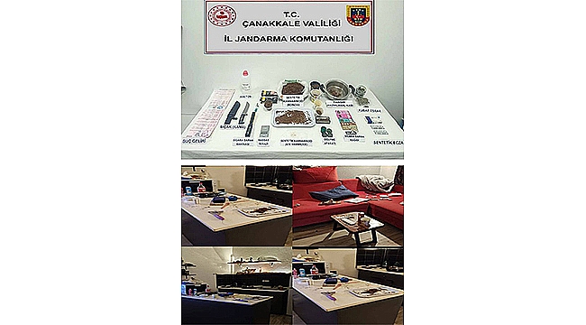 Çanakkale İl Jandarma Komutanlığı, Uyuşturucu ve Uyarıcı Madde ile Mücadele kapsamında 20 Eylül 2025 tarihinde merkez ilçede bir adrese operasyon düzenledi. Narkotik köpeğinin de katıldığı operasyonda çok sayıda uyuşturucu madde ve düzenek ele geçirildi.