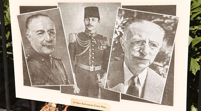 18 Mart kahramanlarından Cevat Çobanlı Paşa'nın fotoğrafları, içerisinde büstünün de yer aldığı ve adının verildiği parkta sergileniyor.