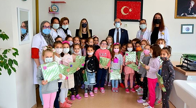 Ziyarette ÇOMÜ Rektör Prof. Dr. Sedat Murat’a eşlik eden ÇOMÜ Kadın ve Aile Çalışmaları Uygulama ve Araştırma Merkezi Müdürü Prof. Dr. Pelin Kanten de çocuklara kitap hediye etti.