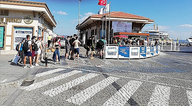 Bugün sabah saatlerinde deniz otobüsü ile adaya gitmek isteyen kentliler, iskelede kuyruk oluşturdular. Metrelerce uzayan kuyruk deniz otobüsünün hareket saatine kadar devam etti.