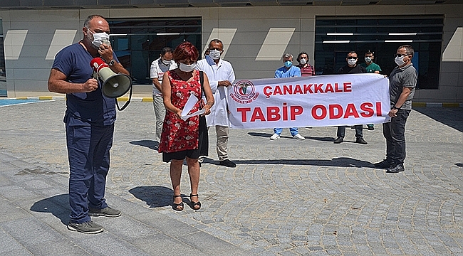 Pandeminin Türkiye’de başlangıç gününden bu güne kadar büyük özveriler ile çalışan doktor ve sağlık çalışanlarının Pandemi sürecinde ki çalışma koşulları ve sorunlarının giderilmediğini aktarmak için Çanakkale Tabib Odası Başkanı Güleda Erensoy ve yönetim kurulu üyeleri Çanakkale Mehmet Akif Ersoy Devlet Hastanesi önünde basın açıklaması yaptı. Tabip Odası Başkanı Güleda Erensoy yaptığı açıklamada “Hekimler ve Sağlık Çalışanlarının Enerjisi ve Sabrı Tükeniyor” dedi. Erensoy açıklamasında şunları söyledi. “Hekimlerin ve sağlık çalışanlarının görevi hastaları tedavi etmek toplumu ise hastalıklardan korumaktır. Toplumu ve sağlık sistemini esastan etkileyen COVID-19 gibi yoğun ve riskli dönemlerde hastalıkla mücadele etmek, bedeli ne olursa olsun bizlerin kamusal, mesleki ve hepsinden önemlisi etik sorumluluğumuzdur. Hekimlik mesleğine adım attığımız ilk andan itibaren bırakmadığımız mesleki ve toplumsal sorumluluk bilinci, üzerimizden çıkarmadığımız beyaz önlüğümüz gibi varlık sebebimizi oluşturur. Ancak olağan sağlık hizmetleri dönemindeki performans baskısı, gerekli olmayan sağlık hizmeti tüketimi ve hekim emeği üzerinden yaratılmaya çalışılan “hasta-müşteri memnuniyeti”, SABİM -CİMER şikayet hatları ve yönetici baskılarının üzerine şimdi de çığ gibi büyüyen vaka sayıları ile pandeminin “virüs yükü” bindirilmiştir. Türk Tabipleri Birliği olarak COVID-19 pandemisinin zayıflatılamadığı ve yaygınlaşma eğiliminin arttığı bu dönemde öncelikli ve ısrarlı talebimiz; hekimlerin ve sağlık çalışanlarının içinde bulunduğu boğucu ortamın görülmesi ve artık nefes alamayacak hale gelip tükendiklerinin farkına varılmasıdır. COVID-19 pandemisi ile mücadele her şeyin normal, olağan kabul edildiği ve Sağlık Bakanlığı başta olmak üzere ülkeyi yönetenlerin hekimleri ve sağlık çalışanlarını görmezden geldiği bir anlayışla sürdürülemez. Hekimler için alkışların yerini uzun süredir hüzün almıştır. Hemen her gün onlarca meslektaşımızın hastalık haberini alıyoruz, birileri televizyonlardan, twetter mesajlarından başarı hikayeleri anlatırken bizler ölüyoruz!”