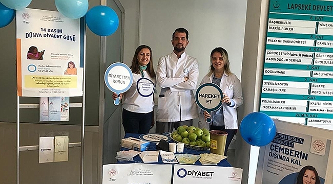 Lapseki Devlet Hastanesi’nde, Dünya Diyabet Günü farkındalık etkinlikleri gerçekleştirildi. Polikliniğe başvuran hastalara, günümüzün en önemli hastalıklarından olan diyabet ile ilgili bilgilendirmeler yapıldı.