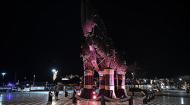 Dünya Otizm Farkındalık Günü kapsamında kentin önemli tarihsel miraslarından olan Saat Kulesi ve Truva Atı kırmızı ışıkla aydınlatıldı.
