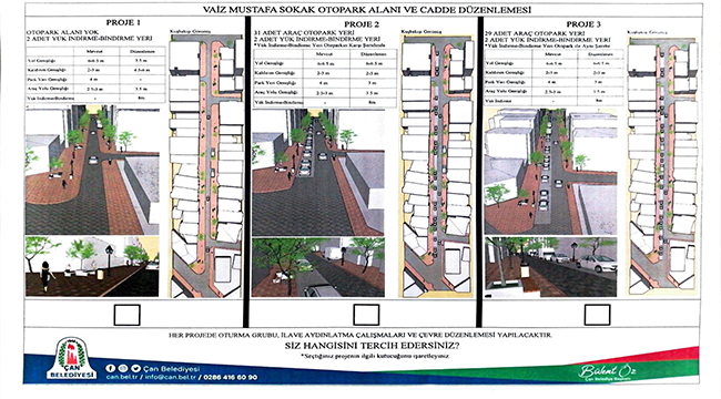 Çan Belediyesi bugün örnek bir uygulamaya daha imza atarak Vaiz Mustafa Sokak'ta gerçekleştirilmesi planlanan Otopark ve Cadde düzenlemesini vatandaşların oylamasına açtı.