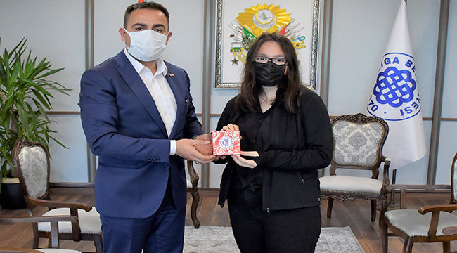 52. TÜBİTAK Lise öğrencileri araştırma projeleri yarışmasında Biga’yı gururlandıran Biga Doğa Koleji öğrencisi Ecem Rabia Kaplan, Biga Belediye Başkanı Bülent Erdoğan’ı ziyaret etti.