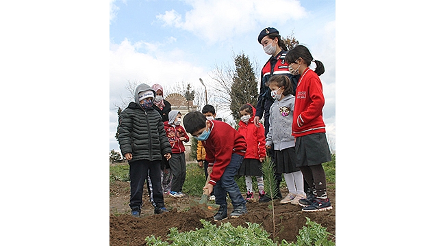 Çanakkale İl Jandarma Komutanlığı Çocuk Kısım Amirliği Bayramiç İlçe Jandarma Komutanlığı sorumluluk sahasında bulunan Muratlar İlköğretim Okulu öğrencileri ile birlikte Orman Haftası’nda ‘Fidan hayattır, Orman gelecek!” sloganıyla fidan dikim faaliyeti gerçekleştirdi.