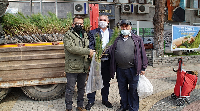 Geyikli Belediyesi fıstık çamı fidanı dağıttı.