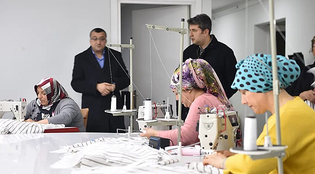 Çan Belediyesi’nden yapılan paylaşımda; “Yetişkin, genç ve çocuk giyiminde ürünlerini imal eden emekçi kadınlarımızı tekstil atölyesinde ziyaret ettik.