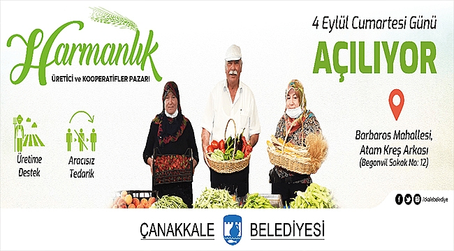 Çanakkale Belediyesinin son dönem projelerinden olan Harmanlık Üretici ve Kooperatifler Pazarı’nın açılışı 4 Eylül 2021 Cumartesi günü gerçekleşiyor.