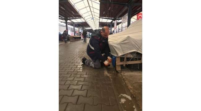 Halk sağlığı için haşere mücadelesi kapsamında, gıda ürünlerinin de satışının yapıldığı Cuma Pazarında ve kentin çeşitli noktalarında biyosidal ürün uygulayıcı personel tarafından ilaçlama çalışması gerçekleştiriliyor. İlaçlama işlemi, yağmur suyu giderlerinin iç kısımlarında uygulanarak ilacın insan ve sokak hayvanlarına temas etmemesi sağlanırken, haşereyle mücadele çalışmaları rutin olarak devam ediyor.