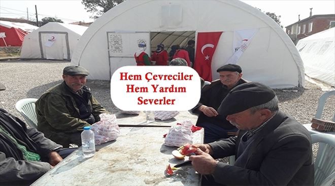 Çevre duyarlılığı için plastik poşet kullanılmayan elmalar kağıt keselere konularak paketlendi. Her birinde iki kg elma bulunan bin adet paket; Çırpılar kooperatif soğuk hava tesisinden yola çıkarılarak deprem bölgesinde en çok hasarın olduğu Yukarıköyde Kızılay ve Kooperatif başkanı gözetiminde depremzedelere dağıtıldı.