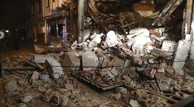 SİT alanında bulunan ve içinde kimsenin oturmadığı koruma altındaki tescilli iki katlı bina, bu akşam saat 21.00´de şiddetli yağmur nedeniyle yıkıldı. Çevreye dağılan enkaz parçaları nedeniyle Yüksel Yörükoğlu caddesi trafiğe kapatıldı. Eski bina yıkılırken, yanındaki Emre Avcılar´a ait lokanta da zarar verdi. Olayda kimse zarar görmedi.