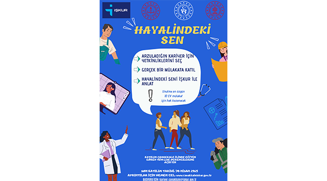 Protokole göre ayrıca iki kurum personeline yönelik olarak eğitimler de düzenlenecek. Bunun dışında “Hayalindeki Sen” CV yarışması düzenliyoruz. Çanakkale ilinde öğrenim gören tüm lise öğrencilerinin katılabileceği, kariyer planlamalarını yapmalarına destek olacak yarışmaya başvurular, 01.04.2021- 30.04.2021 tarihleri arasında [email protected] adresinden alınacak olup, ödül töreni 18.05.2021 tarihinde gerçekleşecektir. Detaylı bilgiye www.canakkaleiskur.gov.tr adresinden ulaşılabilecektir.” Dedi.
