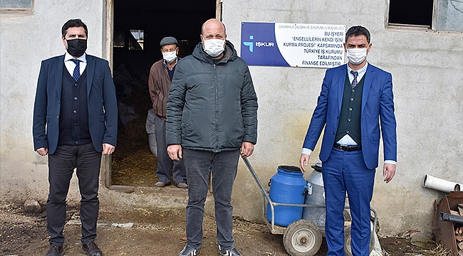 Engelli vatandaşların kendi işlerini kurmasına, mesleki eğitim ve rehabilitasyonlarına, işe ve iş yerine uyum sağlamalarına ve istihdamlarına yardımcı olma amacıyla verilen desteğe başvuran Tamer Tosun’a Çanakkale İŞKUR tarafından 4 büyükbaş hayvan alımı desteği ve kuruluş giderleri desteği; Hüseyin Çakıcı ise aynı proje kapsamında 20 merinos koyun, 1 merinos koç, 3 metre yemlik ve kuruluş giderleri olmak hibe desteği verildi.