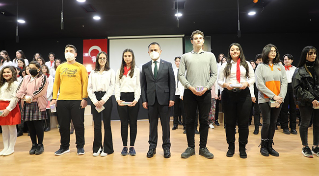 Çanakkale Anadolu Lisesi öğretmenleri ve öğrencileri tarafından hazırlanan ”İstiklal Marşı’nın Kabulü ve Milli Şairimiz Mehmet Akif Ersoy’u Anma” konulu programın sergilenmesiyle devam eden 12 Mart İstiklal Marşı’nın kabulünün 101. yıl dönümü ve Milli Şairimiz Mehmet Akif Ersoy’u anma programında, İl Milli Eğitim Müdürlüğü tarafından il genelinde tüm resmi/özel orta öğretim kurumları öğrencilerinin katıldığı “İstiklal Marşı’nın Kabulü ve Milli Şairimiz Mehmet Akif Ersoy’u Anma Günü” ile ilgili yapılan yarışmalarda dereceye giren öğrencilere Vali İlhami AKTAŞ tarafından ödül verildi.
