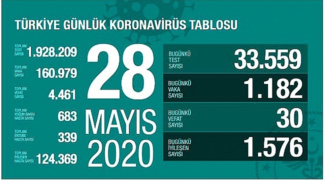 Koronavirüs salgınının kontrol altına alındığı ülkemizde düşüş trendi devam ediyor. Sağlık Bakanı Fahrettin Koca'nın paylaştığı verilere göre, son 24 saatte 30 hasta hayatını kaybetti, 1182 yeni vaka tespit edildi. Tedavisi tamamlanan 1576 hasta ise taburcu edildi.