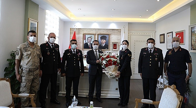 Jandarma Teşkilatının 182. kuruluş yıl dönümü nedeniyle İl Jandarma Komutanı J. Kd. Albay Tahsin Saruhan, J.Albay Ali Kösem, J. Albay Selim Karaca ve İl Jandarma Komutanlığı Personeli Vali İlhami AKTAŞ’ı makamında ziyaret ettiler.
