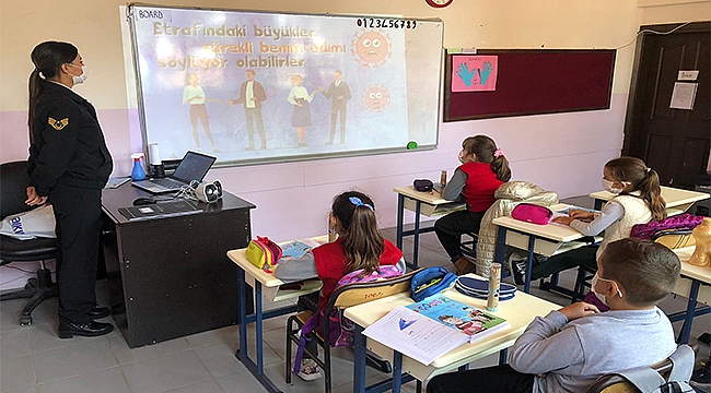 Çanakkale İl Jandarma Komutanlığı tarafından Karacaören Köyü İlköğretim Okulu, Erenköy İlkokulu, Kumkale İlköğretim Okulu ve Bayramiç Türkmenli İlkokulu’nda bulunan öğrencilere aile içi şiddetle mücadele ve “kişisel güvenlik’’ eğitimi verildi. Ayrıca Çocuk Kısım Amiri Jandarma Astsubay Üst Çavuş Mehtap HERGÜL tarafından gerçekleştirilen eğitimde Covid-19(Koronovirüs) tedbirleri ile ilgili de bilgilendirme yapıldı. Bilgilendirmenin ardından çocuklara Jandarma Çocuk Dergisi, Boyama Kalemi ve çantalarında taşımaları için Jandarma Armalı Dezenfektanlar dağıtıldı.