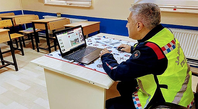 Çanakkale İl Jandarma Komutanlığı sorumluluk bölgesinde, Eğitim Bilişim Ağı (EBA) ve Zoom uygulamaları üzerinden öğrencilere Trafik Güvenliği Eğitimi verildi.