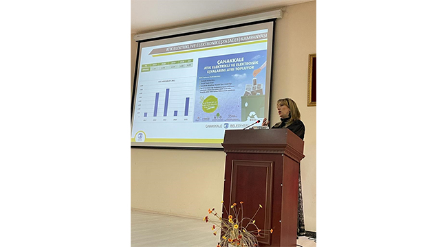 Çanakkale Belediyesi Temizlik İşleri Müdürü Aysun Kavcar, Çanakkale Onsekiz Mart Üniversitesi Mühendislik Fakültesi Çevre Mühendisliği tarafından düzenlenen “Çanakkale Değerleri ve Mühendislik Uygulamaları” seminerinde Çanakkale Belediyesi çalışmalarını anlattı.