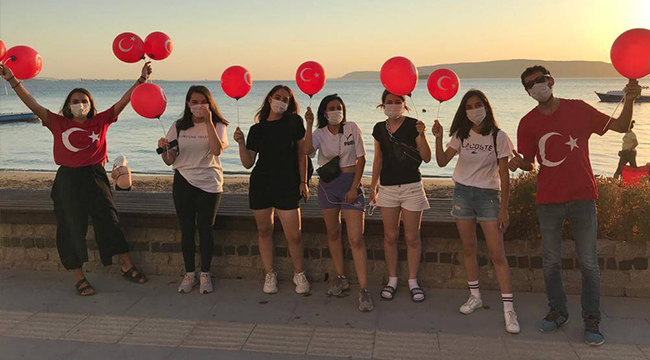 Çanakkale Belediyesi tarafından düzenlenen 30 Ağustos etkinlikleri kapsamında, kentin cadde ve sokaklarında zafer şarklıları ve marşları yankılanırken, dağıtılan Türk Bayraklı balonlar ile de kentliler Zafer Bayramı'nı coşku ile kutladı.