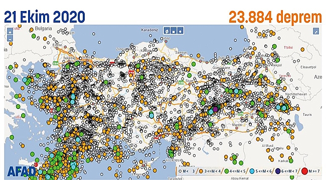 31 Ocak 2020 tarihinde 4 bin 984 deprem meydana gelirken, bu sayı 21 Ekim 2020’de 23 bin 884’e çıktı.