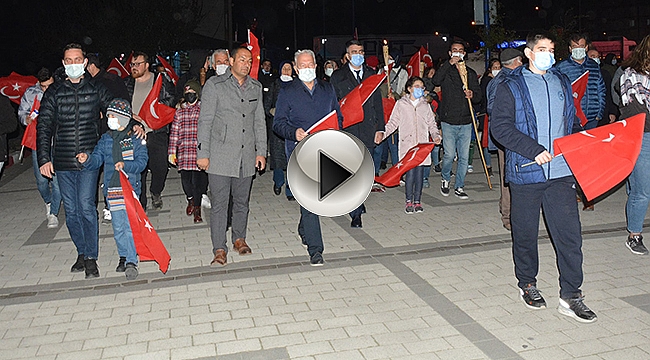 Toplanan vatandaşlar ile birlikte ilçe İlçe kaymakamı Kaymakam Dr. Fatih Çelikkaya, belediye Başkanı Eyüp Yılmaz eşleriyle katılıkken ayrıca AK parti İlçe Başkanı Namık Ergin, MHP İlçe başkanı Hüseyin Doğan, CHP ilçe Başkanı Yaşar Şaban Genç, İYİ Parti içe başkanı Yakup Uzun vatandaşlarla birlikte ellerinde bayraklarla çarşı içinden yürüyerek eski sanayi bölgesinden itibaren ilçe emniyet müdürlüğü tarafından görevli polisler kontrolünde D 200 kara yolu bir süre trafiğe kapatılarak iskeleye kadar yürüyüş yapıldı. İskele meydanında 15 Temmuz şehitler parkında yürüyüş sona erdi burada vatandaşlara havai fişek gösterisi sunulmasının ardından program sona erdi.