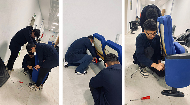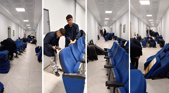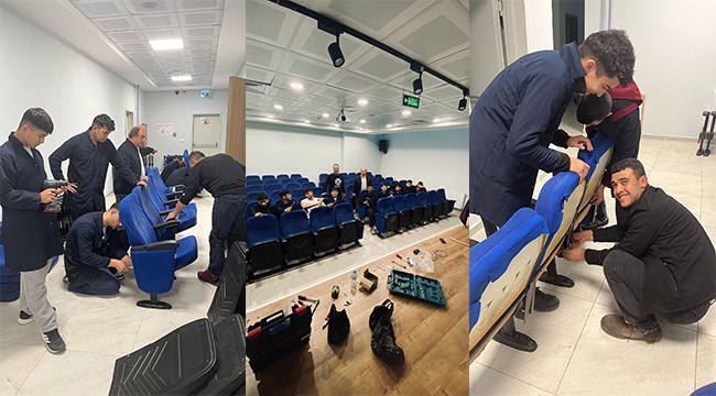 Çan Mesleki ve Teknik Anadolu Lisesi Makine ve Tasarım Teknolojisi Alanı öğrencileri, sosyal sorumluluk projesi kapsamında Osman Çaneri İlköğretim Okulu’nun konferans salonundaki koltukların montaj ve sabitleme çalışmalarını başarıyla tamamladı.