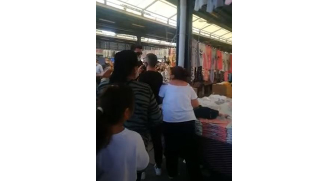 Dün kurulan cuma pazarı girişinde gerçekleştirilen ‘sosyal mesafe’ kontrolleri esnasında sinirler gerildi.