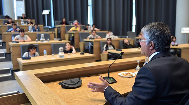 Kent gezileri kapsamında gerçekleştirdikleri ziyarette heyeti, Belediye Başkan Vekili İrfan Mutluay, Çanakkale Belediyesi Yeşil Yerel Yönetim Binası ve Kültür Merkezi Meclis Salonunda ağırladı. Heyeti ağırlamaktan dolayı memnuniyet duyduğunu belirten Mutluay, gezi programı hakkında bilgiler aldı. Öğrenciler de Çanakkale'de oldukları için çok mutlu olduklarını belirterek, Çanakkale Belediyesine de teşekkürlerini iletti. Karşılıklı sohbet ve hatıra fotoğrafı çekiminin ardından sona eren ziyaret sonrasında heyet, Çanakkale Belediyesi Yeşil Yerel Yönetim Binası ve Kültür Merkezini de gezerek bina hakkında bilgi aldı.