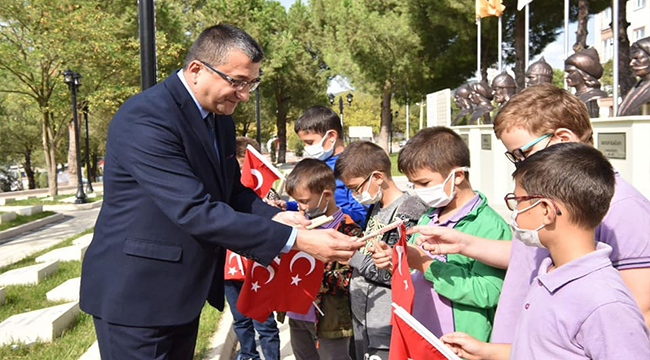 “Türk çocuğu ecdadını tanıdıkça daha büyük işler yapmak için kendinde kuvvet bulacaktır” sözünü kendilerine ilke edindiklerini söyleyen Başkan Öz, “Bu sözü zihnimizde yer ederek gençlerimizi önemsiyoruz. Okul Müdür Yardımcısı Cevdet Dinler ve Öğretmenimiz Cihan Deniz’e tarihin içinde, tarihi yaşattıkları için teşekkür ediyorum” dedi.