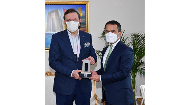 Ziyaretten duyduğu memnuniyeti dile getiren teşekkür eden Vali İlhami AKTAŞ, günün anısına TOBB Başkanı Rifat HİSARCIKLIOĞLU’na minyatür şehitler abidesi hediye etti.